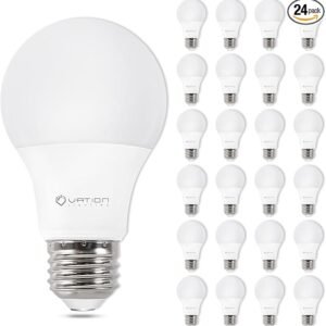 24 Pack A19 LED Light Bulb Daylight 5000K LED Bulbs, 60 Watt Equivalent, Efficient 8.5 Watt, 800 Lumens, E26 Medium Base, Non-Dimmable, ETL/UL Listed