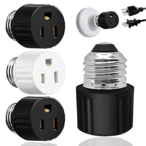 3-Pack Outlet Light Socket Adapter,3 Prong Light Socket to Plug Adapter,E26 Light Bulb to Outlet Socket Converter,2/3 Prong Screw in Outlet Socket for Camera Garage Porch,(2 Black 1 White)