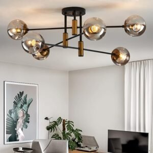 6-Light Glass Globe Sputnik Chandelier Modern Matte Black and Gold Ceiling Light Fixture Vintage Hanging Chandeliers for Farmhouse Living Room, Kitchen Dining Room Bedroom