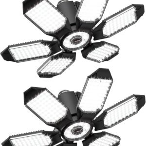 Adiding LED Garage Light Bulb 2 Pack Super Bright Basement Lighting w/ 6+1 Deformable Panel 6500K Shop Ceiling Light Screw in E26 E27 Base Socket for Workshop,Attic,Warehouse,Utility Room,Laundry